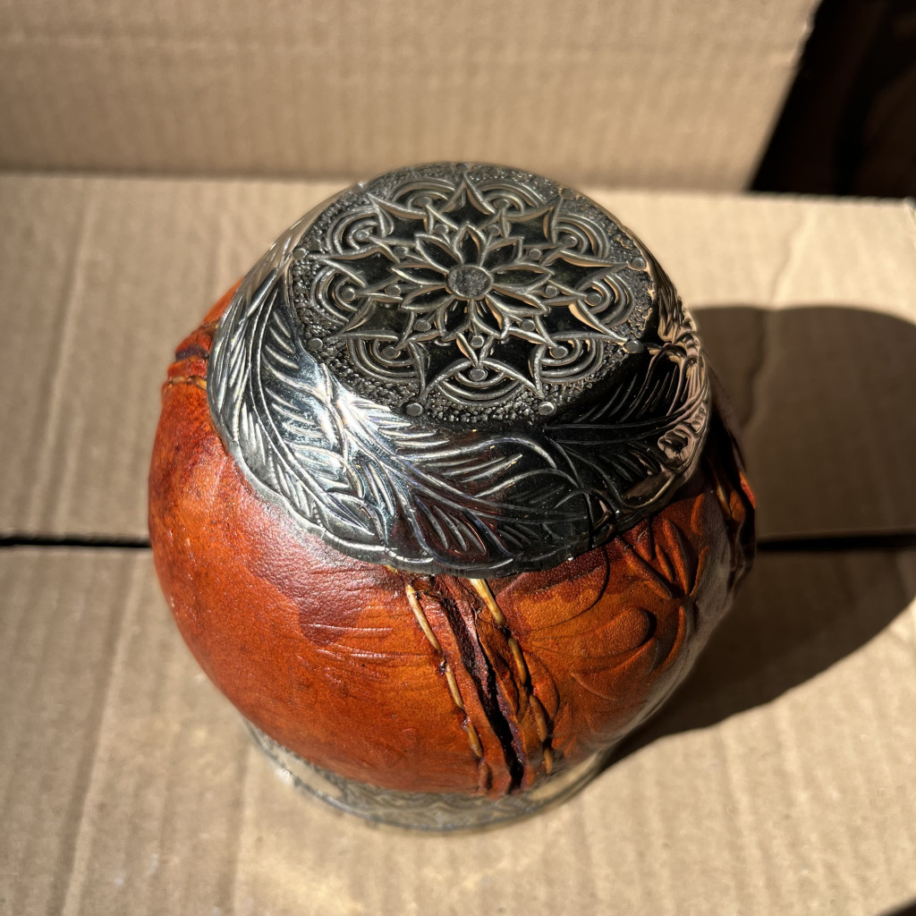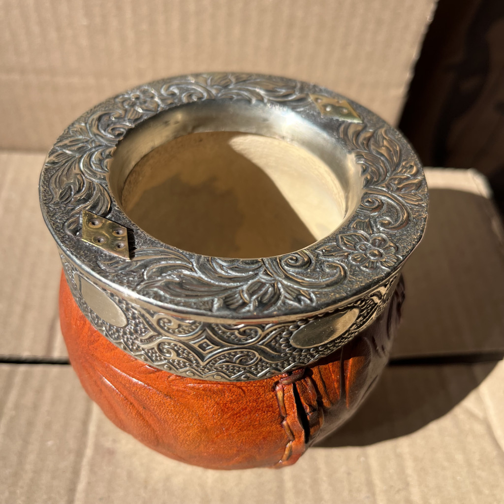 Ékszerlábú, a mate állványának végét alpaca gömb ékszerek díszítik.