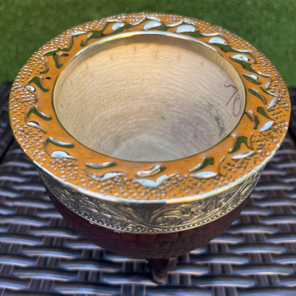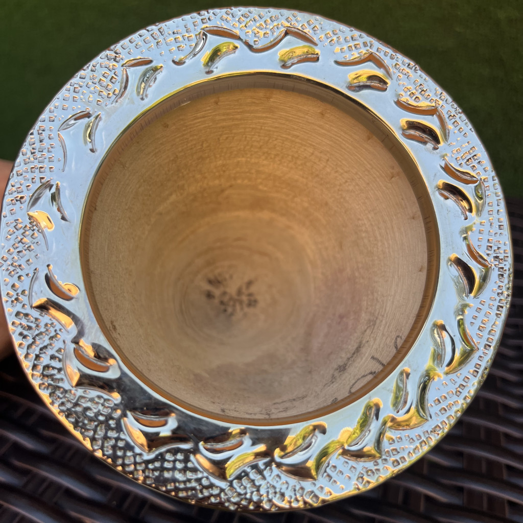 Modell: ImperialFém anyag: AlpacaMagasság: 11 cmÁtmérő: 9 cmBeavatás: 1 napos beavatást igényel (Az uruguayiak 2-3 napot javasolnak).Karbantartás: A Tök vastag fala miatt, hosszabb szárítási időt javaslok és különösebb figyelmet.