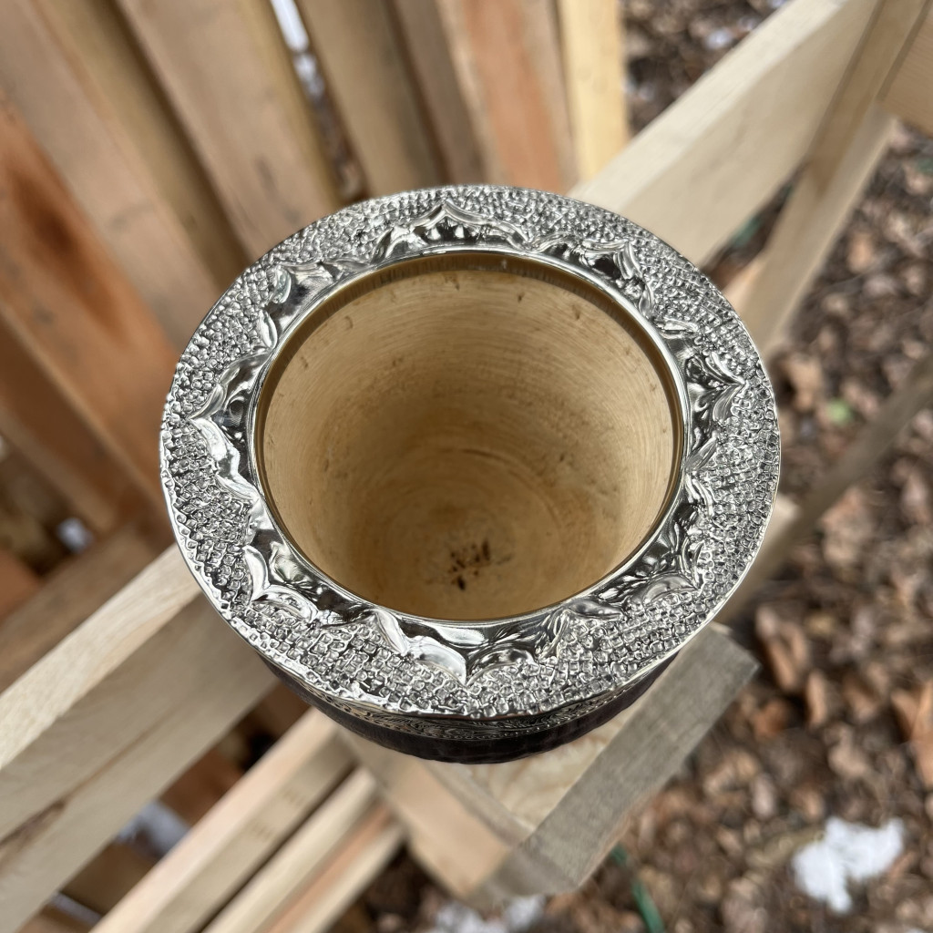 Modell: ImperialFém anyag: AlpacaMagasság: 11 cmÁtmérő: 9 cmBeavatás: 1 napos beavatást igényel (Az uruguayiak 2-3 napot javasolnak).Karbantartás: A Tök vastag fala miatt, hosszabb szárítási időt javaslok és különösebb figyelmet.