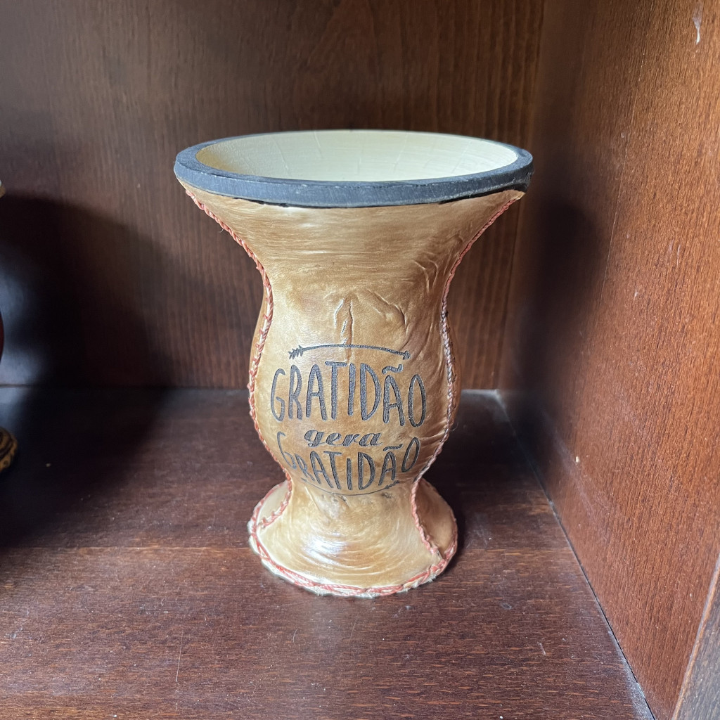 A cuia-n ez áll: „Gratidão, geva gratidão.” - "Hála, örök hála.”