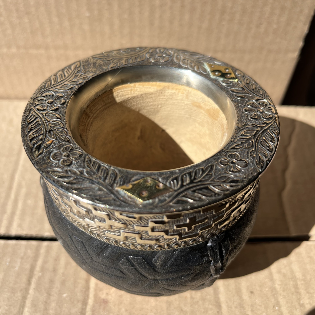 Ékszerlábú, a mate állványának végét alpaca gömb ékszerek díszítik.