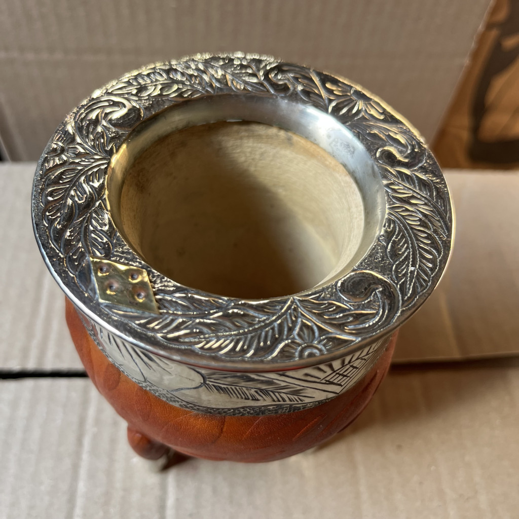 ESQUINERA, a mate állványának végét alpaca újezüst fémtalpak díszítik.